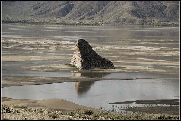 行进中,司机指着江中的一个石山说,这是传说中印度飞来的一座山,原本是跟莲花生大师去到桑耶寺的,却被一个当地女子看到,就停留在雅鲁藏布江中了。因此叫印度的一座山。