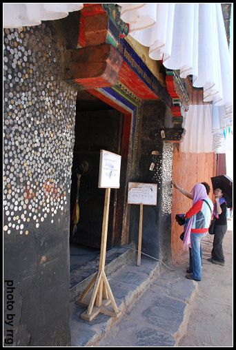 令人遗憾的是,这里正在全面修缮,不对公众开放。只能站在"曲康夏"门口,拍下其两侧贴满硬币的大门和高大的桔红色外墙。