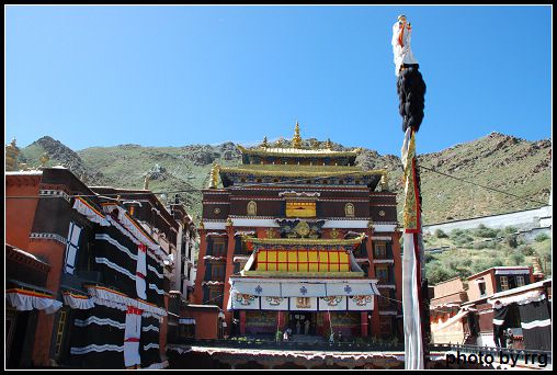 穿过黑暗的隧道,再次回到普照的高原阳光里。这里是去往措勤大殿(大经堂)和“扎什南捷"的岔路口。