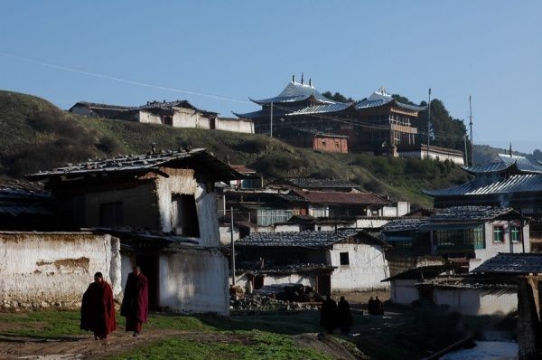 不过沿途全副武装的军警设关卡查证件,再加上在松潘遇到通讯网络中断很长时间,不免让人有一些紧张。进到朗木寺镇,那些藏人还有一些僧人的眼神贼贼的,看着都有些寒气。我们四人加上车上另一对情侣怕危险决定哪都不去找房了,直奔青年旅舍。六人住了一间十人间大房,哈哈,第一次与这帮年轻人混在一起睡床位。在青年旅舍我们还遇上了一位60多岁高龄的老大哥,他单骑走千里,从内蒙一直骑单车到了朗木寺,准备一直向前……厉害吧。第二天早晨我们还在睡梦中,他就每个房间敲敲门告别上路了。