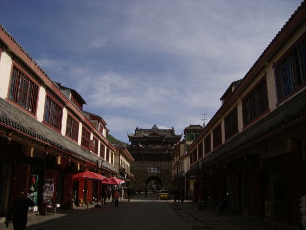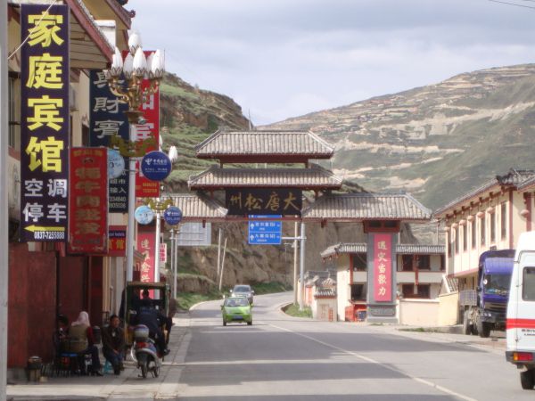 松州城是历代兵家必争的边陲军事重镇,是汉民族与少数民族茶马互市的商贸集散地,是我国现存城樯中首屈一指的古城遗址。城里的建筑以回汉建筑风格为主,色彩艳丽,充满异域风情。街两边店面林立,一些具有地方特色的工艺品和土特产品,如唐卡、藏刀、刺绣、雕刻、珠宝首饰以及野生中药材虫草、松贝、天麻等,尤其是经营牦牛肉的店面到处都是。最值得称赞的是城里整洁干净。