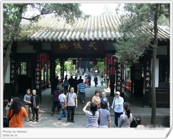 武侯祠简介:成都武侯祠又名“汉昭烈庙”,是纪念中国古代三国时期蜀汉皇帝刘备和丞相诸葛亮的君臣合祀祠宇,是中国惟一的君臣合祀祠庙。武侯祠建于唐,唐朝大诗人杜甫曾有诗写到它:“丞相祠堂何处寻,锦官城外柏森森。”现在的武侯祠是清康熙年间重建的。它同先主庙、刘备莫相毗连。
