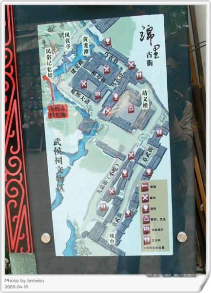 day2(09年4月16日,周四):一早就在网上查到了武侯祠正门对面横街的红旗连锁超市里可以申购到熊猫金卡,故起床吃过早餐后就直奔红旗连锁。去到后得知要每天10:00~17:00才能申请熊猫卡,只得在附近闲逛,顺便看看公车站的公车线路,计划下当天的行程。