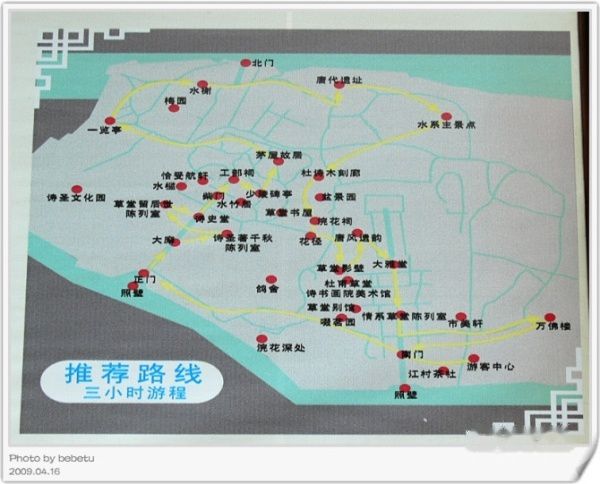 杜甫草堂的旅游路线比较曲折,一定要在进门后先看一遍导游图的推荐路线。