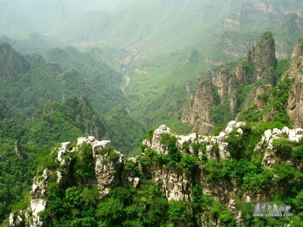 一路上,一望无际的华北平原在公路两边铺展开去,对于我这样的南方孩子,起初还觉得稀奇,直呼:真平啊!不过时间长了,难免生出些许审美疲劳。除了偶尔看到几个其貌不扬的尚可被称为“山”的小土包外,实在无甚惊喜。正当困倦之际,远远望见远处不太通透的云霞外,一座——不,应该说是一排——奇峻的墨色山影,青森森的、威风而狰狞地矗立在那里。我一下从座位上跳了起来,只听司机说:“狼牙山”,就是因为这山峰好像一排尖利的狼牙。