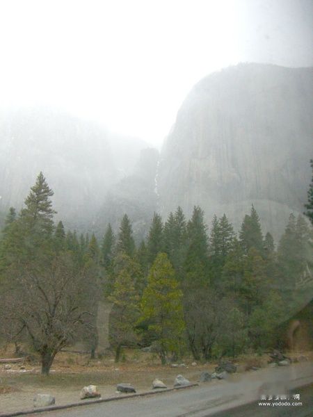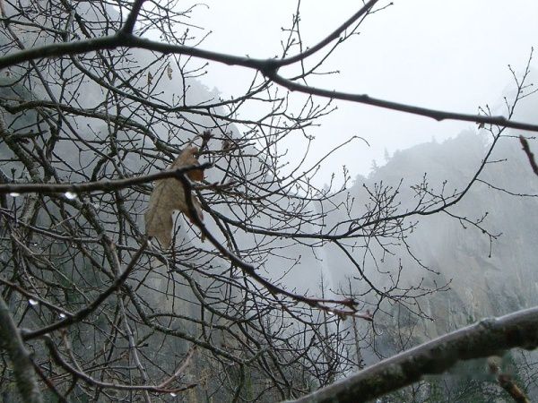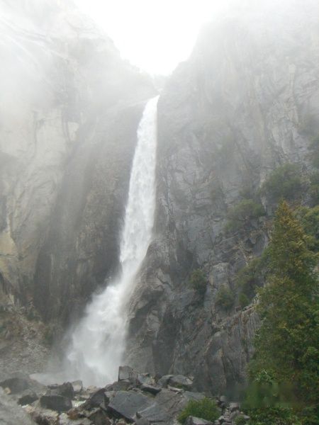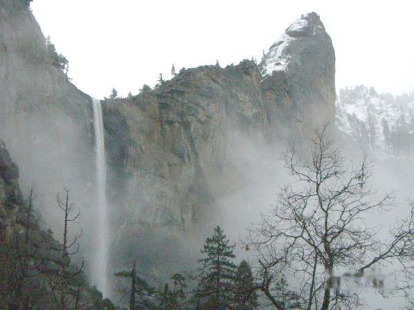 这座740米高的优胜美地瀑布(Yosemite Falls)可是全北美最高的瀑布,世界上第二高瀑布。奇特的是这瀑布被瀑潭隔成了两段,位于上面的瀑布落差达435米,水流湍急,下面一段的瀑布稍微温和。即使现在是冬季,有时还飘着雪,它还依然那么壮观。