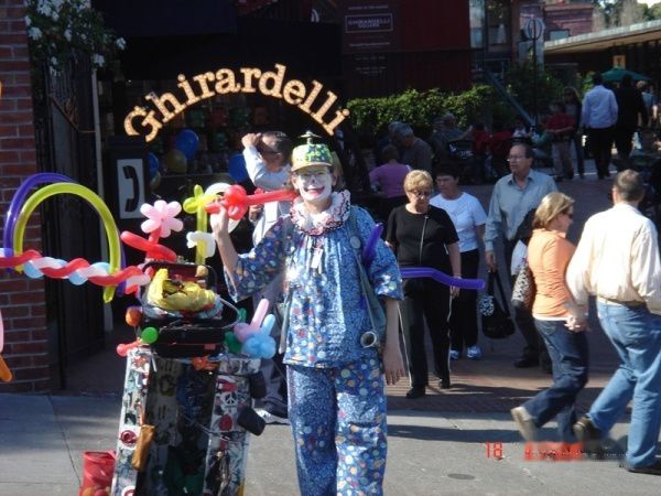 进入渔人码头区域,路边卖气球的小丑在我们的要求之下,转过身来含蓄地面对我们的镜头。