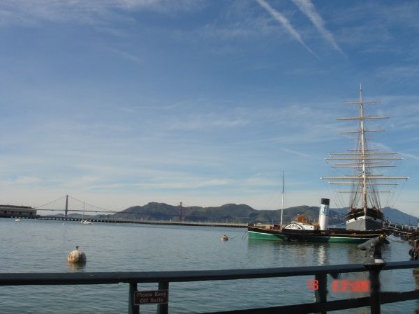 在海德街道码头Hyde Street Pier,你可以远眺金门大桥。