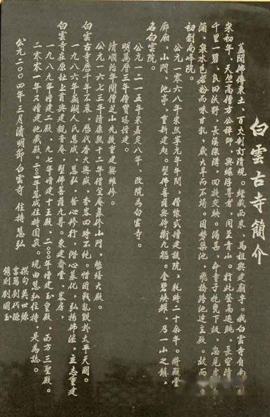 白云寺殿前新打一块铭碑,更详细的记叙了白云寺的千年沧桑。