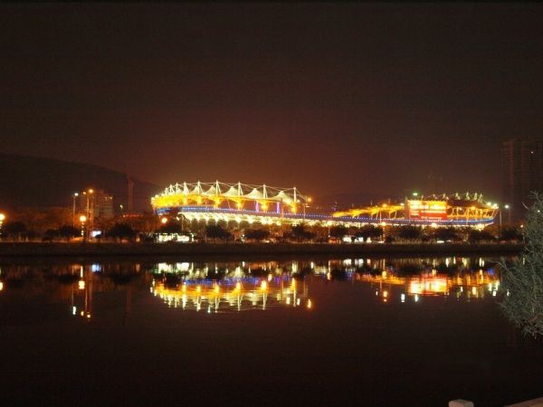 夜晚我们搜寻着厦门槟榔路酒吧一条街,街对面的体育馆灯火辉煌。