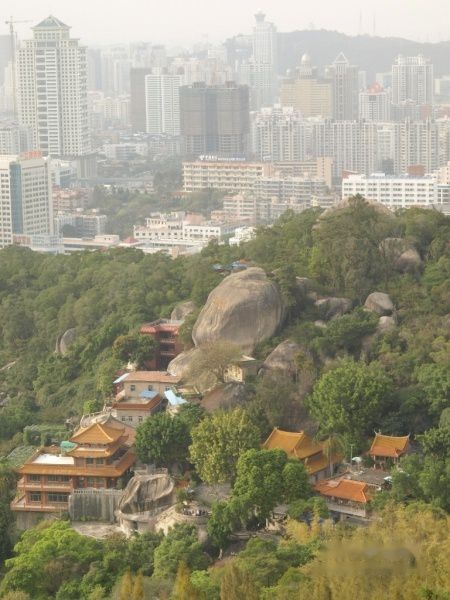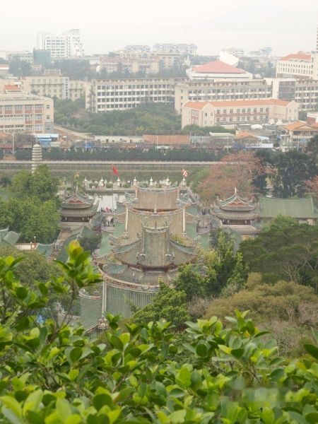 登上五老峰,俯视山下,整个南普陀寺尽收眼底。虽然山不是很高,但是崎岖的爬山路还是真的让那些怀着不同心情前来的人们觉得体力不支。
