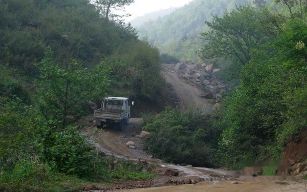 山区的村民是那样憨厚可爱,义无反顾加大油门冲上山路的陡坡。