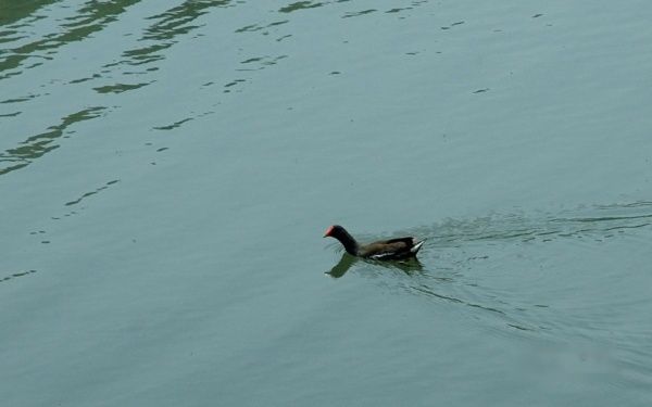断桥一边竟然游来一只水鸟,是野鸭还是什么其他怪物,我只见过长江滩涂的野鸭是灰色的脑袋,这红红的鸟头将我的判断引入歧途,鸟儿显然不知道白蛇的传说,否则就不会有此胆量到此一游,就不怕落进蛇口。