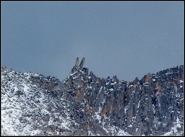 再往前走,路的左手出现了一座奇怪的山峰,一只兔子竖着两只耳朵?!地图上没有它的名字,板四爷抓住机会停车向路过的一位藏民打探,几经辨识总算听清了那是“兔耳山”看看它的照片吧?