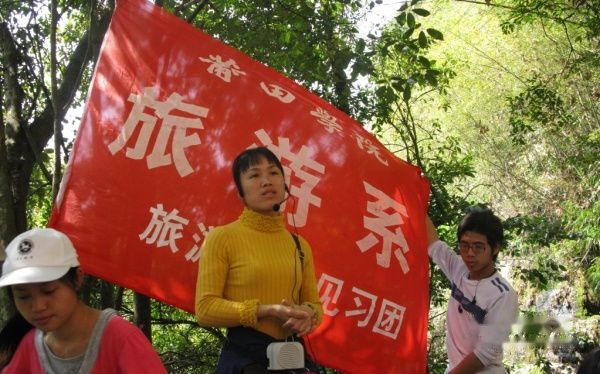 虎啸岩下的平台人声鼎沸,那一群学子聚集在这里,原来是当地的一所学校的旅游系在实践体验,我们还意外地听到一堂现场教学。