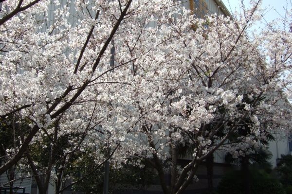 绿化地里的樱花马上就要绽放了,樱花树逢春先开花后长叶子。