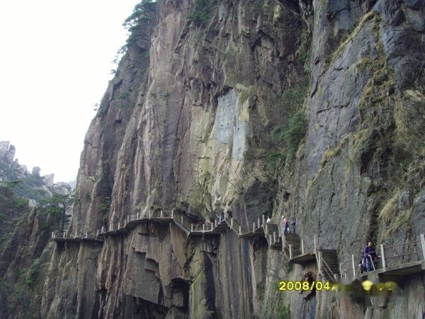 这里挺险的,也不知道这条道是怎么建成的,下面是千丈悬崖,从照片中可以看到我们可都是靠里走的。