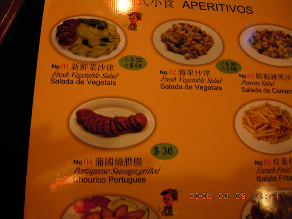 终于排到我们了。进去屋里是卖猪扒包的柜台。值得一提的是一个年龄11-12岁的脸色粉白粉白的小男孩。个人觉得他应该是混血儿。在一边收钱,递货。至少会说4中语言。(普通话,粤语,葡萄牙语和英文)俨然一个熟门熟路的精明小掌柜,真是难得啊。