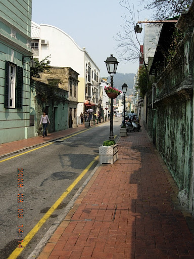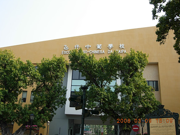 饭毕,我们终于有心思开始闲逛了。这条大名鼎鼎的官也街。也是澳门各大地图和美食地图重点描绘的美食地带。它的一端是凼仔中葡学校。红色的学校,有点气派的葡国风情。