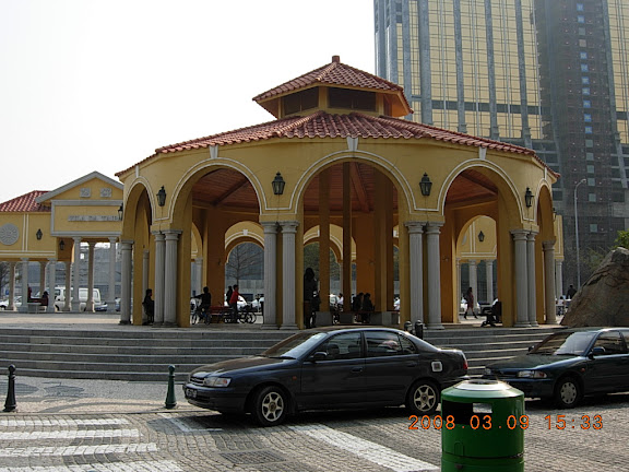 我们坐的33路公车回到澳门本岛,在**旁边下车了。又回到我们上回走过的地方又走了一圈。