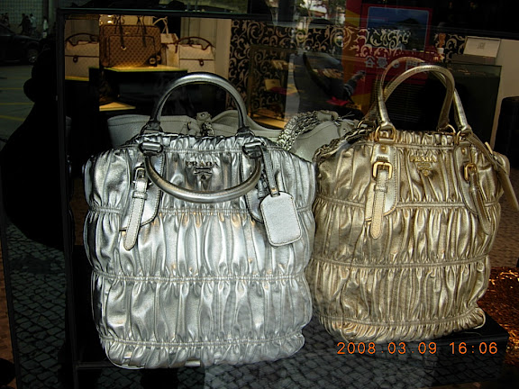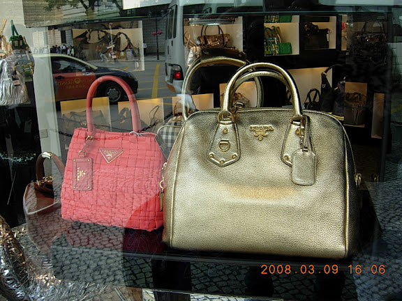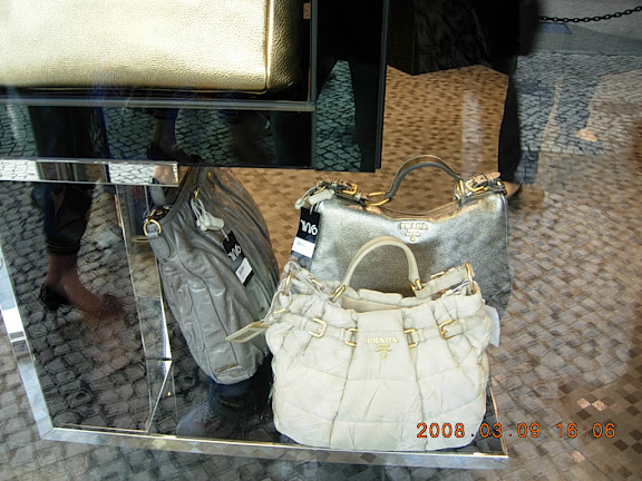 (隔着外边橱窗的玻璃拍了一下Prada的包包,我这样的穷人只能看看啊,还有那个Milan Station,进去看的包包都是几万几万的,带着LG进去了一趟,他说,我是买不起了,你第一可以去找个能买得起这些包包的别人,第二你就自己挣钱买它们。我晕啊。。。。。。混得太惨)