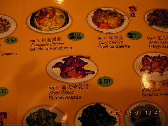 其实这样出名的地方就是路边搭者棚子的类似小排档的地方。但是食客真的很多。我和LG都还没有吃早餐。现在已经将近1点了。早就饥肠辘辘了。可是我们不能在这样的小摊上吃。我们没有那么多钱。所以必须找一个能刷卡的地方。只好去了对面的那个叫做木偶葡国餐厅。点了一个西洋炒饭,一个葡国烧腊肠,一个葡式烤乳鸽。花了好像150多澳币。真贵啊。(说实话,吃完后,不知道什么味道,好像有股芥末味儿,要不是饿了,我还真吃不下这么难吃的东西,为葡萄牙人民深感悲哀!)