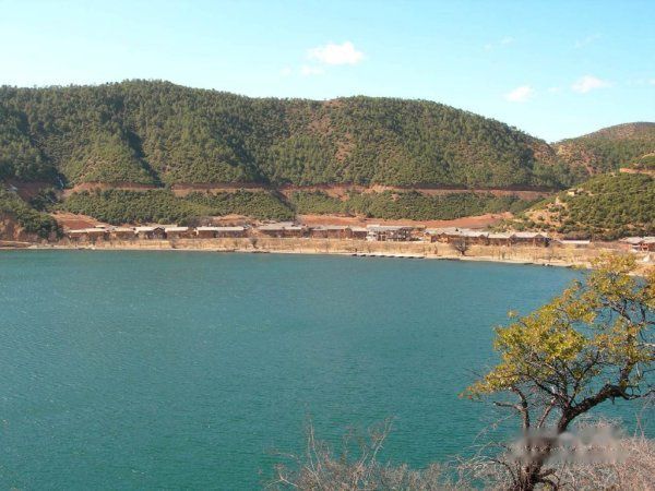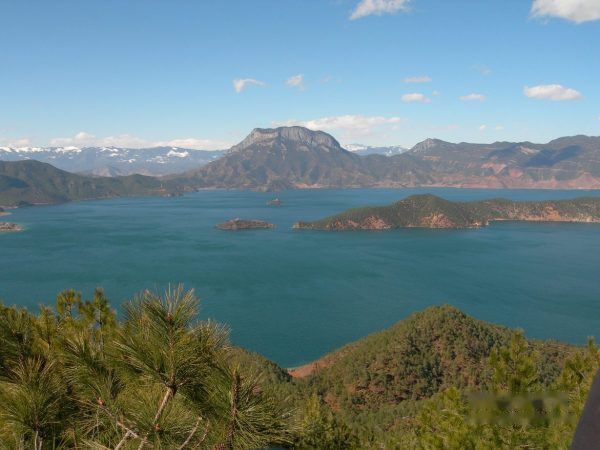 看到這個就離瀘咕湖不遠啦, 中間還遇到小塞車路上有雪還沒化車輛行走不易 我們還趁機會下車先給瀘咕湖照幾張像, 真是漂亮 藍色的湖+白色的雪 這好像只有在電視上看到的景象真是有總說不出的興奮 導遊先到我們到一個觀景台可以看到整個瀘沽湖 這個景色真的只有來過的人才知道 但是時再太冷照幾張相