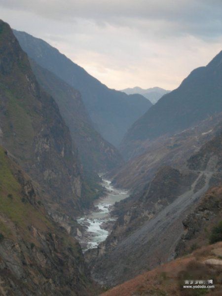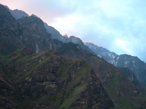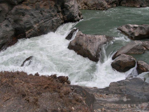 昨天從瀘沽湖回來後, 我們的珉瑋兄就一直惦記雨崩. 昨晚回來就詢問他們在麗江住的房東因為他們也是要去雨崩, 經過一晚的考慮早上就決定和他們去雨崩, 結果留下我們三個人, 今天原本計畫要去虎跳峽的結果到巴士站因為春節關係巴士不開. 結果我們三人又跑回麗江正在盤算去哪玩時, 在瀘沽湖同車認識的朋友說要去虎跳峽結果我們一起包車到上虎跳, 到了上虎跳要換包車由於人數關係我們有認識一位也要去中虎跳的朋友(許大哥), 他看起來比我大很多其實小我幾個月但他有多次自助旅遊經驗所以我就叫他做大哥. 哈哈