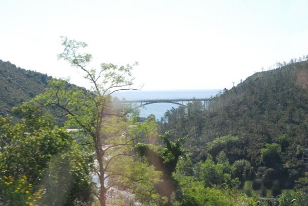 这里的视野更为开阔,近处的山、远处的海,让看惯了城市灰色高楼人一下子有了精神。我们的车子一直贴着山腰走,远处的大桥把两架山丘连成了一体。