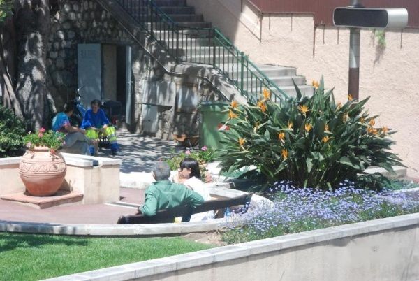 路上基本上看不到什么行人,只是不时的车子驶过。灿烂的阳光下,人们在花园般的街头小憩,一边闲聊一边享受沐浴阳光的乐趣。