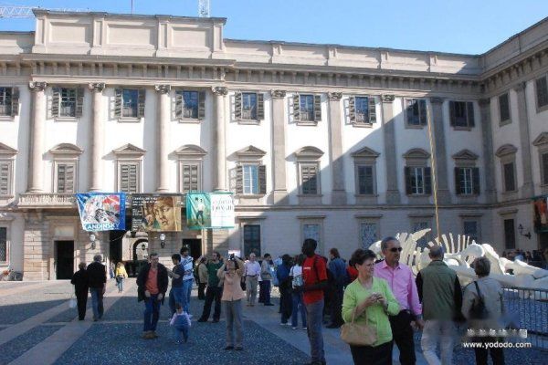 如果我的方向感没错的话,这座美术馆或画廊是在米兰主教教堂的东南侧,因为是星期天,进进出出的人不少,门头的巨幅肯定是在宣传展览的主题。
