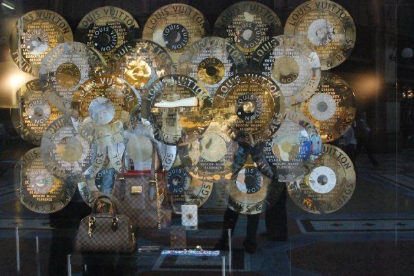东北角是LV,店面装饰中的一款橱窗设计得很有新意,多少对LV老龄化问题有所突破。