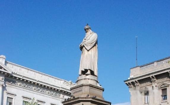 穿过长廊是一个小广场,广场中间是达芬奇的雕像。雕像的周围有饮水处和供人休息的座椅,也有不少的鸽子在广场上漫步。