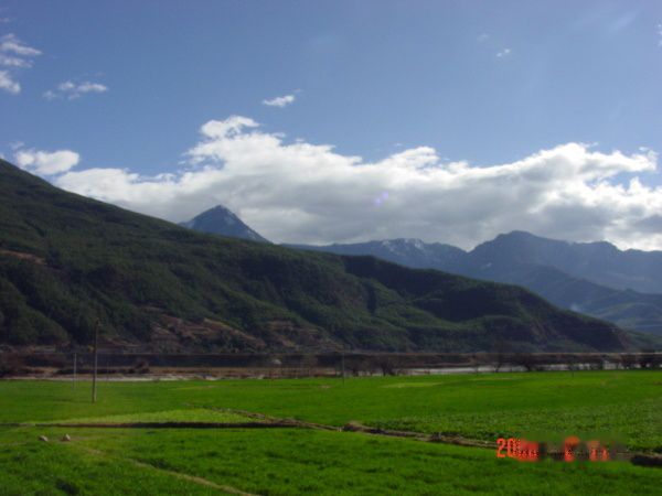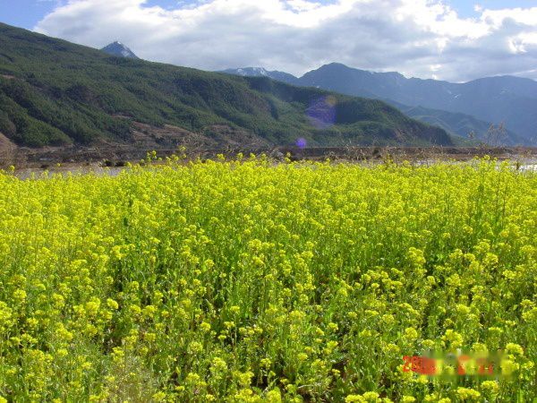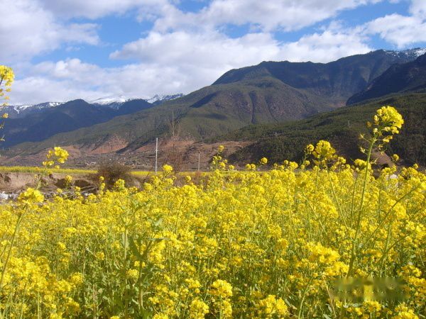 吃过早饭,坐上车返回丽江,一路上欣赏漂亮的油菜花,黄黄的小花,一片一片的,错落有致的穿插在绿色的田野之间,真的很美!听说,到了3、4月份,可以看到更多的油菜花,那时候一定更美。车行约2个小时,到了石鼓镇,欣赏了这里的长江第一弯,其实就是金沙江在这里拐了一个弯,成U字型,这一路上,已经看见了很多拐弯的河道,不知道为什么这里这么有名。不过,这里的视野还是很好的,江边的景色也不错。