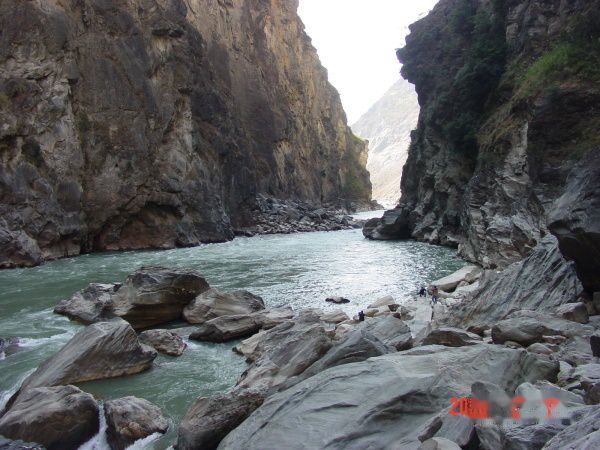 今天早上从丽江出发,跟了一个户外俱乐部,上午的目标是:虎跳峡。虎跳峡分为上,中,下三个部分,由于这次时间比较紧,所以只能徒步中虎跳,据说中虎跳是景色最美的地方,从丽江出发后,经过拉市海,进入盘山公路,路上可以清楚的看到玉龙雪山的主峰和其它几个山峰。今天的天气也格外的好,雪山在阳光的照耀下,显得更加美丽。