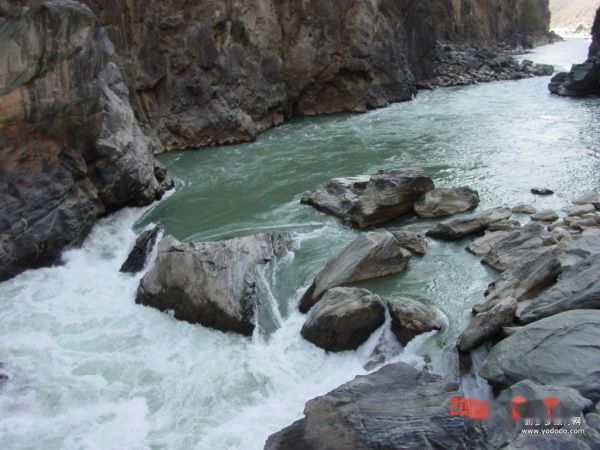 午饭后,坐当地的车直接进入虎跳峡景区,从上虎跳进入,一路观看山间的美景,金沙江在哈巴雪山和玉龙雪山的夹缝中顺流直下,江水甚为湍急,不时可以看到江水撞击岩石产生的白色水花。车行9公里,来到张老师家,从她家后面的小路下山,可以直达中虎跳岩石,山路还可以,不是很难走。越往下走越能听见隆隆的水声,大概用了半个多小时下到中虎跳石,景色真是壮观,江面并不是很宽,但江水湍急,撞击岩石后有时会产生一个个漩涡。两边的山势也很陡峭,坐在江边的巨石上面,可以清楚的感受到金沙江的气魄。