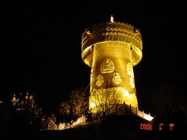 晚饭后,去了香格里拉古城,古城里面的店铺也都关门了,一点人气没有,和丽江古城差远了,但是房屋和街道还是很有自己的特色,如果是平时,应该也是人很多的地方,在这里可以看见一个藏教的转经筒,听说这个转经筒是世界上最大的一个。这会儿的香格里拉夜晚还是很冷的,所以我们没敢过长时间的停留,随意看了看就回旅店休息了。