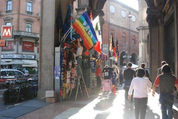 埃玛努埃尔二世长廊外边的环廊上有一些专卖足球纪念品的小摊儿,从队标到旗帜或球衣和球星卡,一应俱全。虽然不是球迷,可也知道有AC米兰和国际米兰两大俱乐部,只是不知道这里卖的是谁家的。