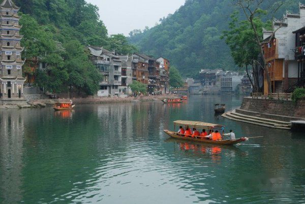 搞定住宿后,便又要去搞定五脏府,随便找了家临江的饭店,点了几个当地特色小菜,沱江小鱼、山笋炒腊肉和清炒扇菜,沱江小鱼味道尚可,做法是小拇指至中指大小不等的小鱼在油炸后,再和胡葱、红绿辣椒等一起炒,山笋炒辣肉则味道偏咸,空口几乎无法下咽,必须配合米饭一起才可以吃的下去,而扇菜据说是只有当地有的一种蔬菜,吃起来口味也无甚特别,普普通通。另外叫了瓶啤酒,最后结帐43元。因为是家常菜,所以价格尚可。不过该店的凤凰名菜血粑鸭和酸汤鱼的价格则明显比其他店家贵上很多,该店是45元,而其他饭店我看菜单,不过30元上下。