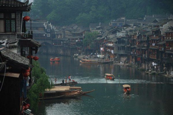 我并未看过沈从文关于故乡凤凰的那本小说《边城》,我对凤凰的印象仅仅来自于网上的一些只言片语,以及前不久买的陆离所著的自游天下一书中所些的几章。而我人生记忆中和湘西这两字有关的所有内容,就只有小时候看过的一本电影《湘西剿匪记》了。但不管如何,此时,在去凤凰的车上的我,对于从未谋面的凤凰的印象,已经定位在了几个关键字:青石板路、吊脚楼、黑砖黑瓦的房子与那些个蓝布缠头的苗族人们,当然,还有那清晨的朦朦细雨。
