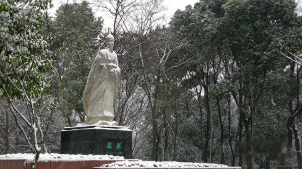 雪中的赭山格外地妩媚,我更是喜欢那表达坚强的塑像,雪中的屈原满目苍桑,如同表达他淡薄而刚毅的一生,无私而忠诚的愿望。