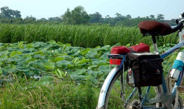 顺着大道一路飞奔,刚才还是蒙蒙细雨,现在又是日出乌云,远远可以看到东方的青弋江大堤,大道基本是笔直,偶尔要照顾村庄时绕一点弯路,一直是弯弯曲曲的青弋江却时远时近,又是一个最近之处,忍不住又岔上小路登上江堤,果然不出所料,青弋江的大度和秀气非常河可比,对岸的阶梯和小船给我带来学生时代的记忆。