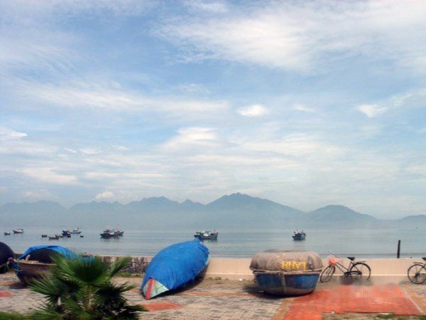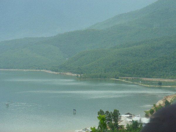 07-10-04 AM7:45从会安出发前往顺化,之前很多旅游杂志和手册上都提到了全球50个一生必去的地方之一--暹港至顺化一段,这段就在从会安至顺化的路上,虽然书上没有具体提到到底具体哪一处是怎么样的美,所以对于我们而言显得更加的神秘,于是我们期待着乘车去感受这段路上的美丽。我和那个广州来的女孩都坐在车子的右边,(根据LP上面提到的从顺化到暹港推荐乘车坐在左边)。一路上我们睁大眼睛并且照相机时刻准备着,生怕错过那唯一的美丽。AM8:25车把我们送到一处叫Marble montain玉山的地方,是一座小山,可能是以产玉出名,所以特地在此停留。下车看到上面一处刻有“阴府洞”的入口,门票15000Dong。问过售票员爬山来回要1个小时,但是我们只有半个小时的停留时间,于是就仅在附近转转。假象一下爬上山观赏海景的美丽。AM9:50又停在一个海滩边,看到之前手册上面列的经过的景点,才知道此处是Lang Co Beach。