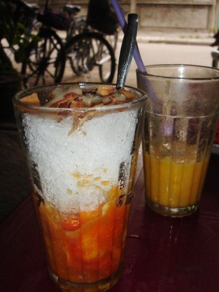 在一处小院里面休息休息来了个下午甜品。当你看到Sinh To 的招牌,一定不要错过,这就是当地的街边甜品,很好吃,才3000Dong/杯。这样的休闲很惬意。