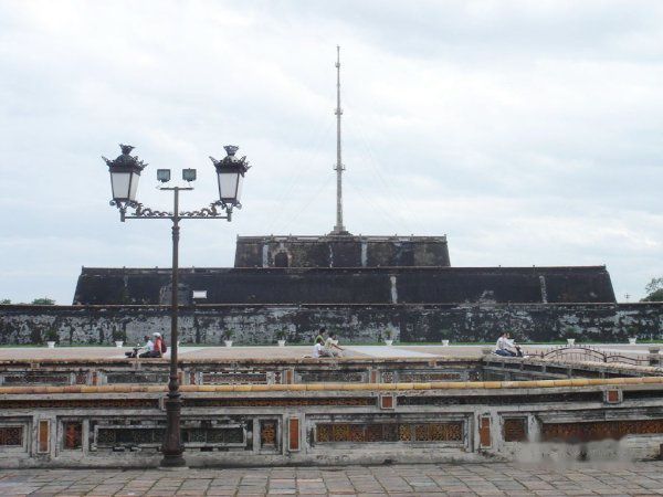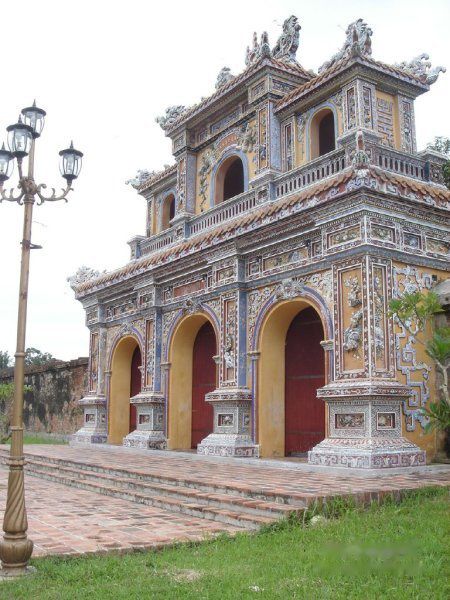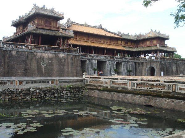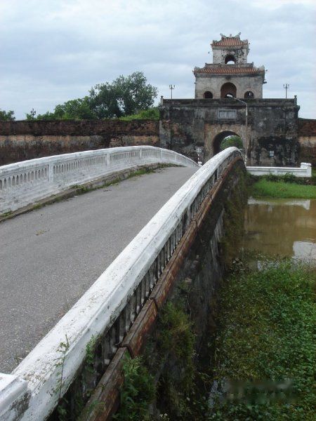 那个广州的女生也是为了感受这个美怀着同样的目的才决定到顺化,然后再飞回胡志明。AM11:55到了顺化,我们来到手册上面推荐的Xuan Trang cafeteria 吃午饭,1杯Lemon juice 6000Dong+1份 Vietnamese beef steak 30000Dong+1听Yogurt 4000Dong+1份 Crepesfill with bean sprouts,shrimp and servered peanut sauce 7000Dong +1份Banana Pancake with chocolate 7000Dong。食物并没有给我留下很深的印象,不过这家餐厅的独特之处是老板会给前来吃饭的游人展示他宝贝的留言薄和相片。留言薄里面有来自全球各地的人们对老板的评价,对这家餐厅提供的摩托车游的评价等等。这是我这一路第一次看到这么多的评价,而且所以人都留下了E-mail等联系方式,希望能够通过这种方式结交更多的朋友。其中也有来自中国的,不过有个别提醒人们小心不要上当。看了之后,感觉心里暖暖的,禁不住也留了言。不过老板说通常都是让参加摩托车游的人留言。墙上也看到有个中国旅友提醒大家是黑店,心里默默地偷笑,要是老板知道是什么意思,肯定会很火的。还是保留下,延续老板对这些留言的骄傲吧!吃完饭,和广州女孩告别。于是我又开始了一个人的旅行,向皇城走去。