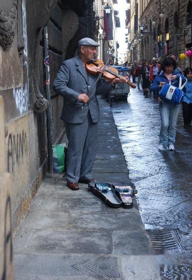 小巷中拉琴卖艺的老人。本来小提琴的慢曲子听上去就有些哀婉的意境,幽深的小巷更给琴声增加了特别的共鸣。老人顾自拉着,虽然有些生硬,即也像是已经陶醉在自己的琴声里了。只是老娘听了他的琴声感叹道:唉,要这么说,你也可以拿着琴到这儿来收钱了。