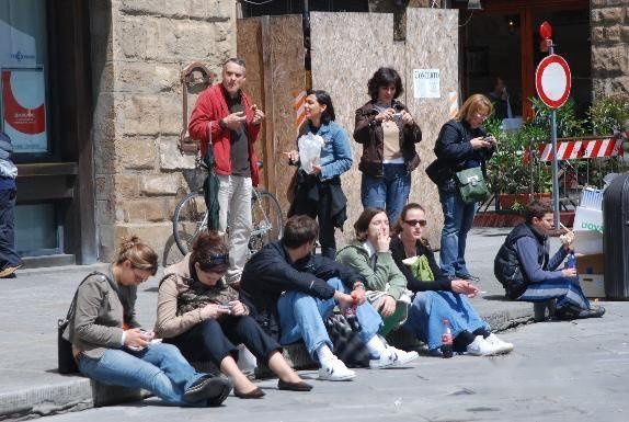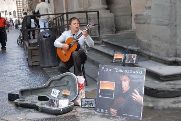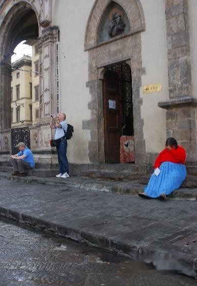 圣母百花大教堂的街道边,游客们在兴奋地拍照,留下对这座教堂美好的记忆;这个吉普赛乞丐幽幽地坐在那里,她在想什么呢?