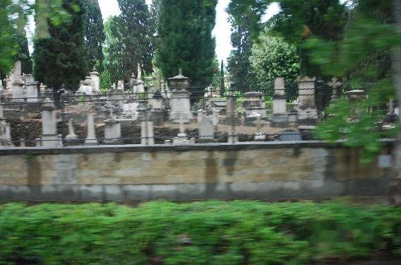 欧洲人真是对墓园不太在意,这是佛罗伦萨快出城的一块墓地,直接地设在路边,没有任何遮拦。后来想起来若是与巴黎比较起来,真算好多了。