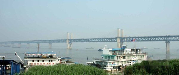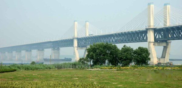 然而,长江大堤涣散一新,被大桥施工弄得泥泞的大堤已经修整一新,铺上沥青的道路向大桥延伸,滨临大桥的江滩绿草如茵,我刚上江堤还在发愣,大桥的全貌已经展现眼前,大桥受绿茵和江水的衬托,雄伟之下再添一份妩媚。