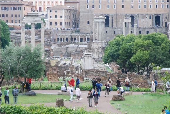 左上方带远处顶上带塑像的白色建筑就是维克多·埃曼纽尔二世纪念堂,也是威尼斯广场上的主要建筑。看上去好奇怪,这里一千多年前的废墟、几百年前的建筑、今天的普通民房,怎么有一种穿越时空的感觉呢?